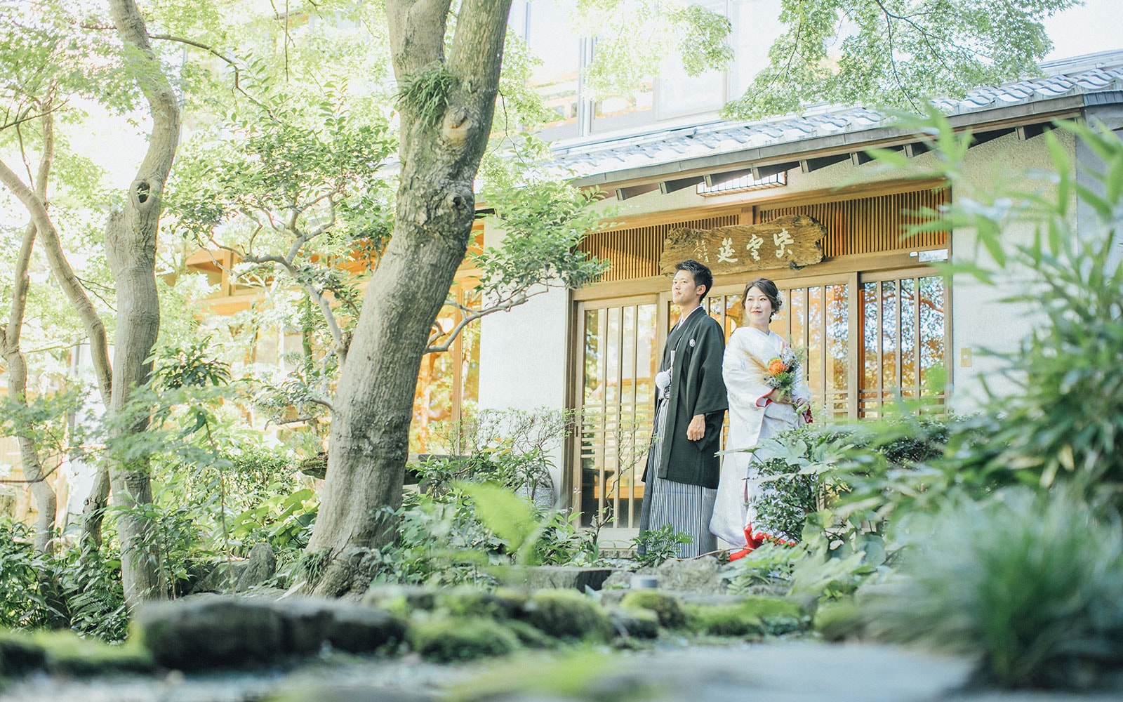 庭園の見えるレストランでスタイリッシュなウエディングを。